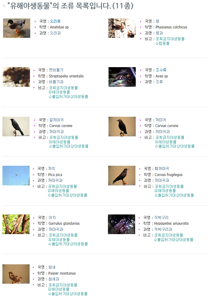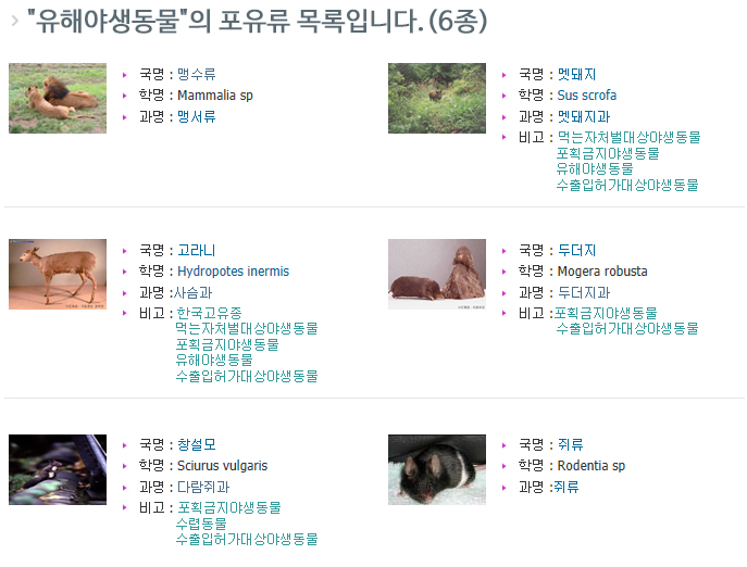 Home > 유해조수구제단 >유해야생동물