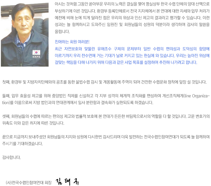 KHPS (사)전국수렵인참여연대 / 법인설립허가 제 2007-27호 / 환경부 민간단체 등록 제 121호